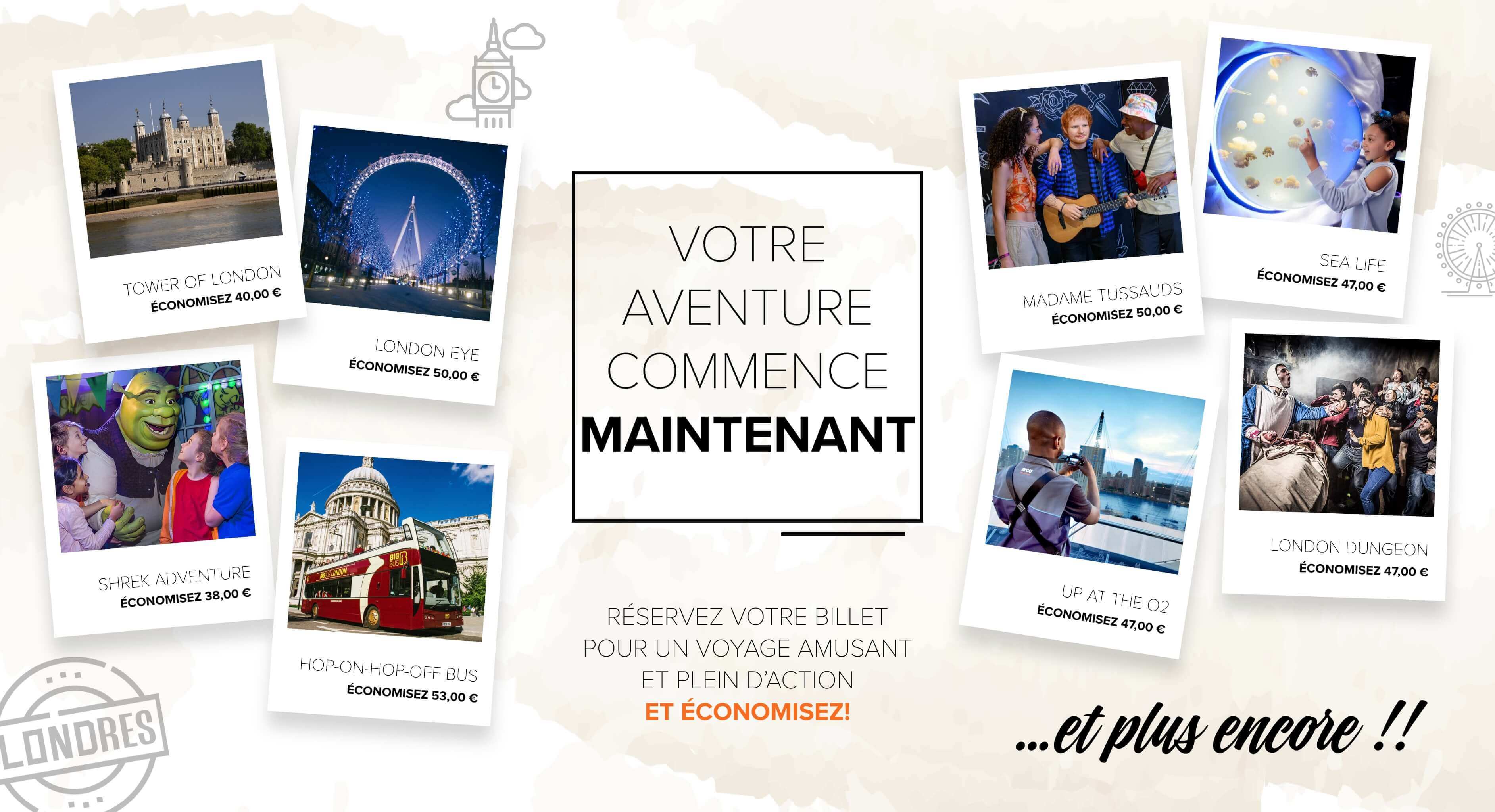 Avec le Londres City Pass, nous vous garantissons d'importantes économies car il vous permet d'entrer dans d'innombrables attractions à un prix avantageux - un seul billet, tout compris !
