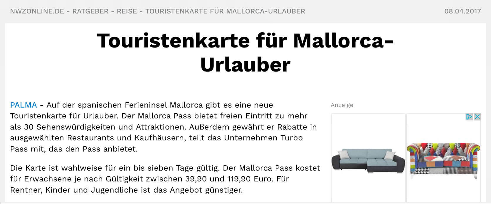 www.turbopass.de gebucht werden. Das Starter-Paket kostet 79,90 Euro pro Person, die Variante Classic 109,90 Euro und der City Pass Best 129,90 Euro. Kinder bis 12 Jahre und Jugendliche bis 17 Jahre zahlen ermäßigte Preise. Die Nutzung des öffentlichen Nahverkehrs kostet ab 25 Euro pro Person. Der Pass wird nach Zahlungseingang umgehend per Email zum Ausdrucken bereitgestellt oder per Post zugeschickt.